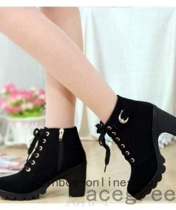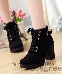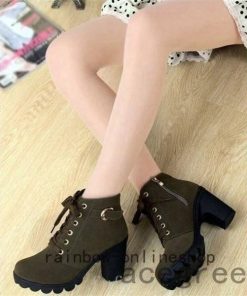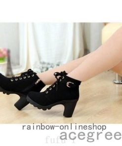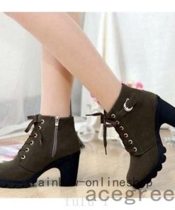 エンジニアブーツショートブーツレディースレースアップ秋冬靴編み上げブーツ厚底ハイヒール太ヒールジッパー付き金具付き暖かい