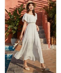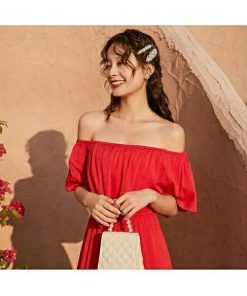 「当店」ハワイ リゾートワンピース 沖縄 リゾートワンピー 夏ワンピース オフショルダー マキシ丈 黄色 白 赤色レディース Aライン オフショル