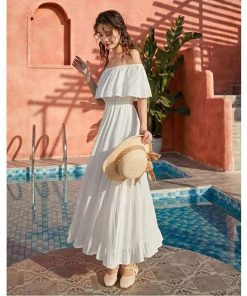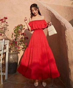 「当店」ハワイ リゾートワンピース 沖縄 リゾートワンピー 夏ワンピース オフショルダー マキシ丈 黄色 白 赤色レディース Aライン オフショル マキシワ