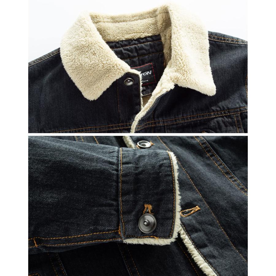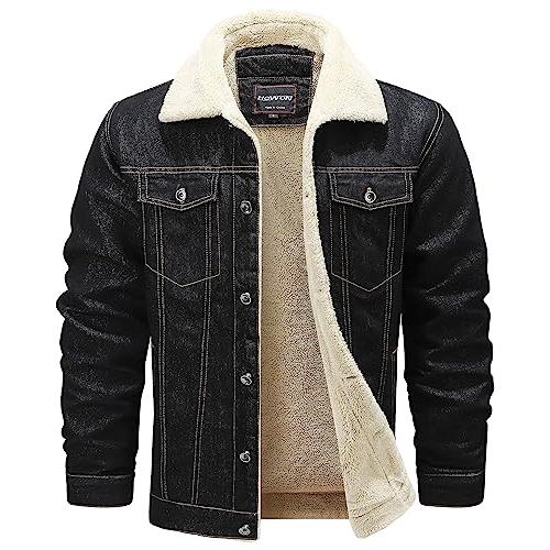 商品名: HOWON OUTERWEAR メンズ US サイズ: L HOW’ON Men’s Plus Cotton Warm Fur Collar Sherpa Lined Denim Jacket Button Down Classy Casual Quilted Jeans Coats Outwear Black L