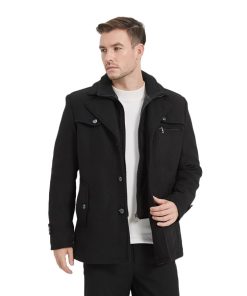 商品名: Litteking メンズ ウインターピーコート カジュアルウールトレンチコート シングルブレスト ショートウールジャケット US サイズ: Medium カラー: ブラック Litteking Men’s Winter Pea Coat Casual Woolen Trench Coat Single Breasted Short Wool Jacket Black M