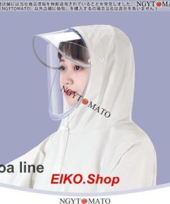 雨よけ用の大きなつばは透明で視界を遮らないレインコート
