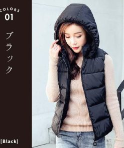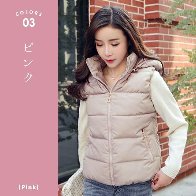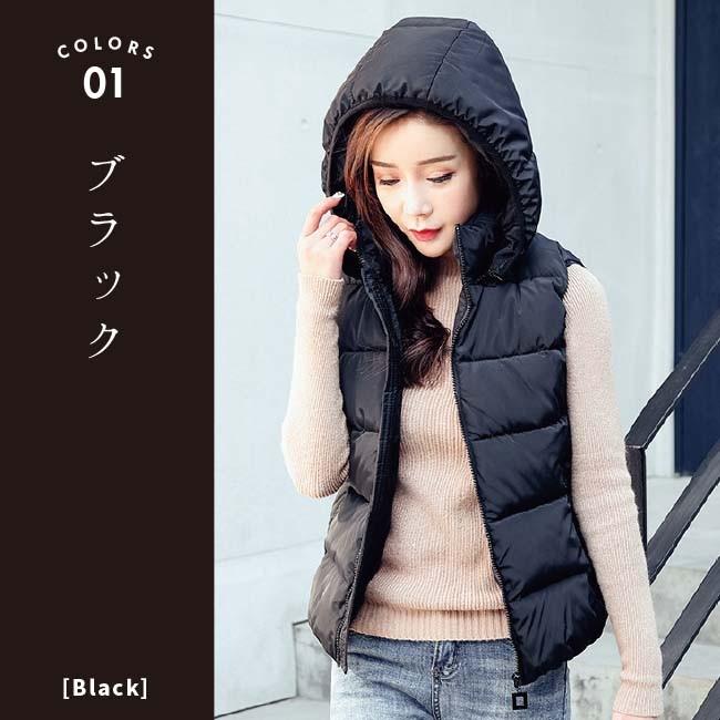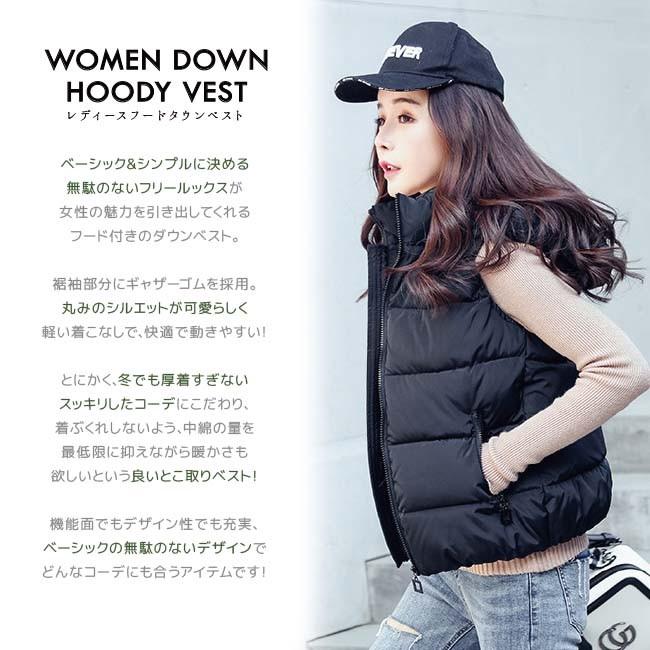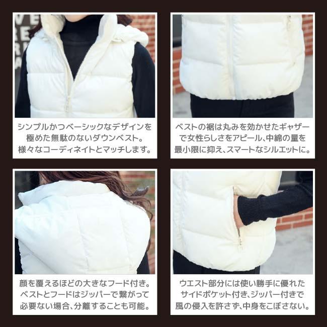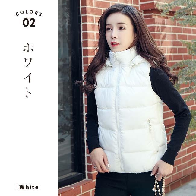 【在庫処分セール!送料無料!】レディース 中綿 ダウン コットン ベスト ダウンベスト アウター フード 冬 秋冬 防寒 暖かい 羽織り ブラック ホワイト 白 黒