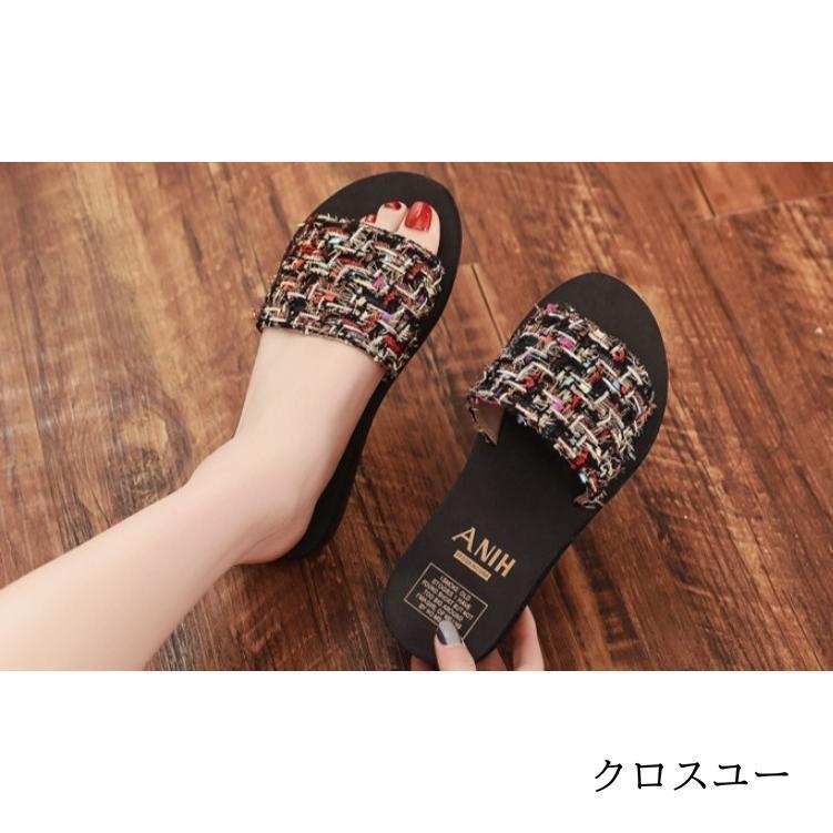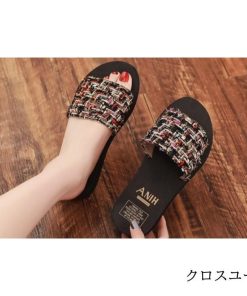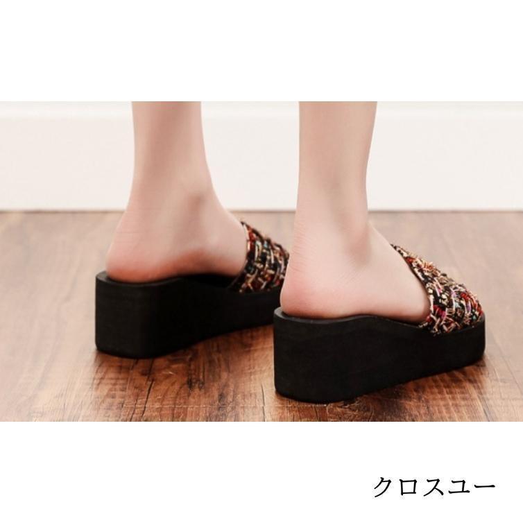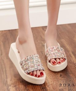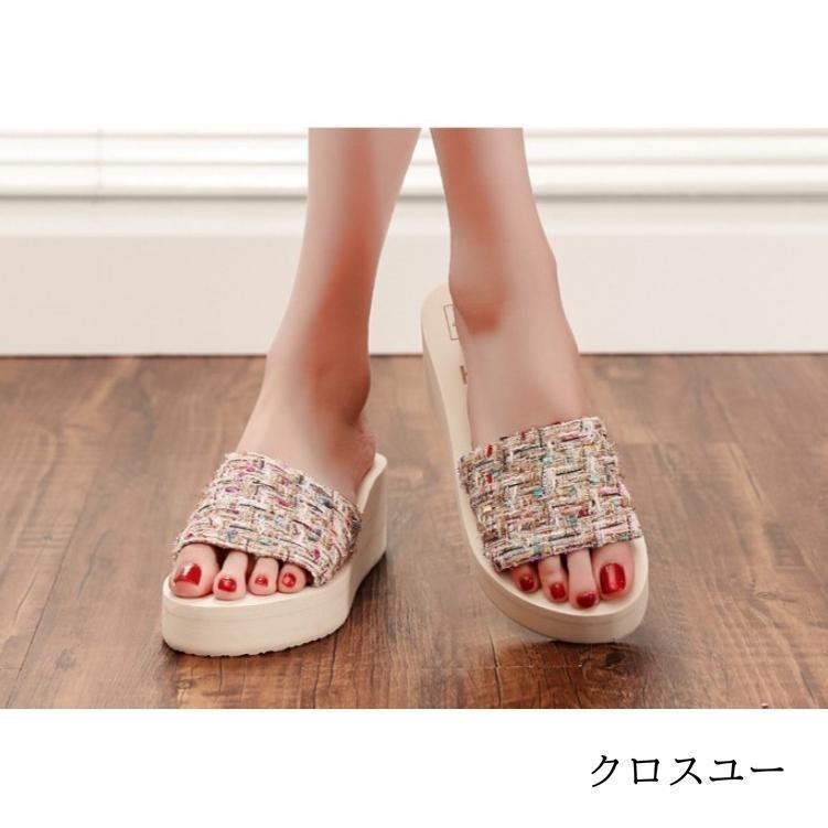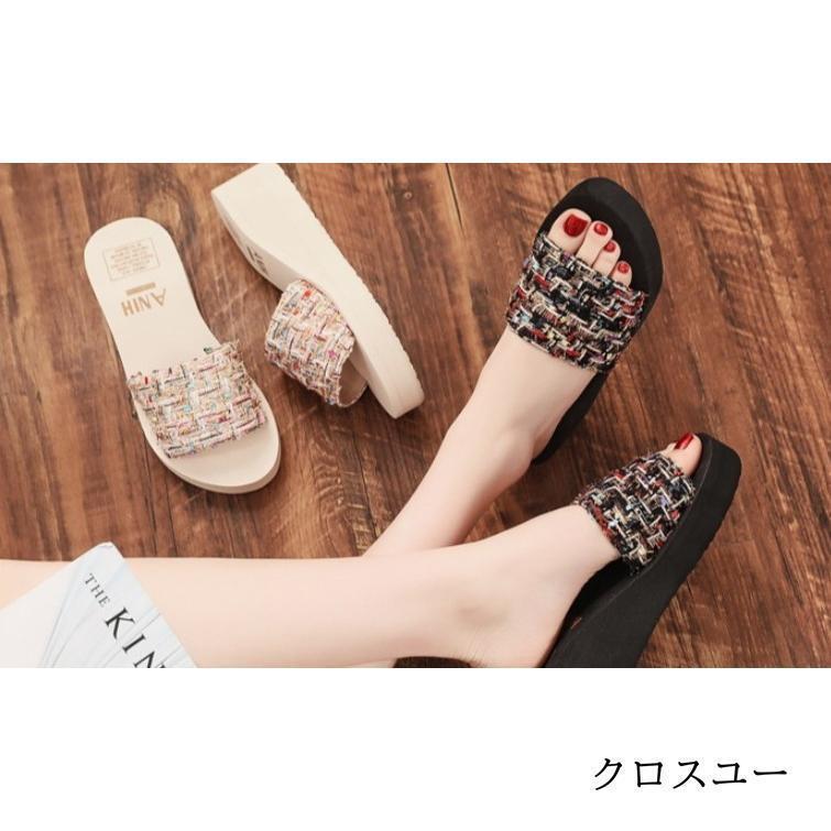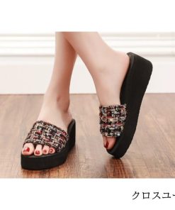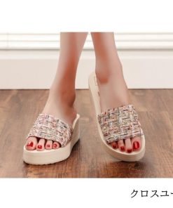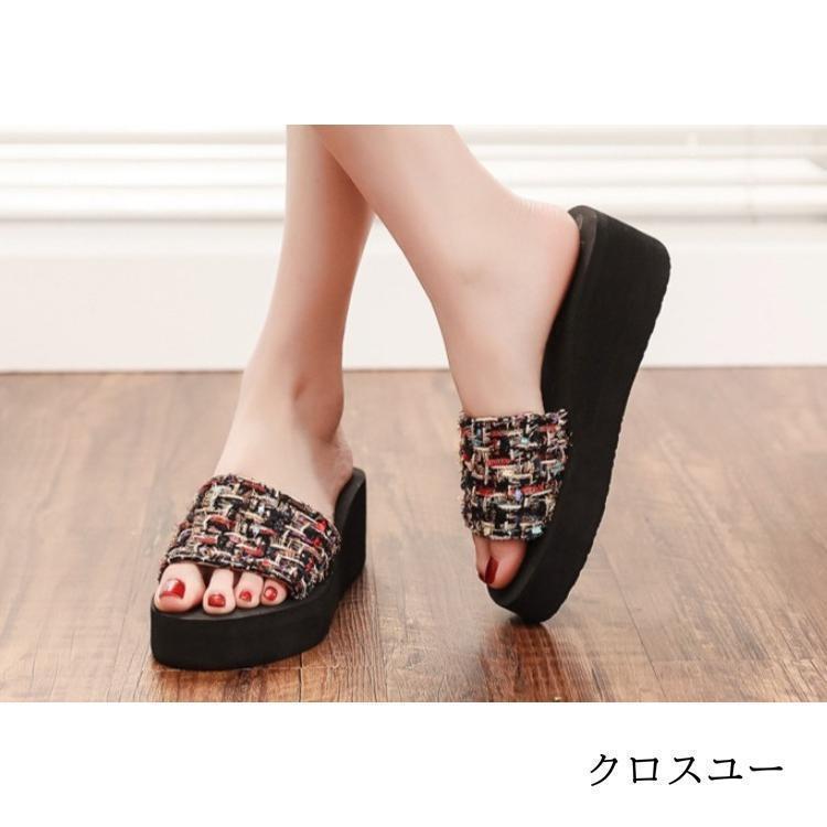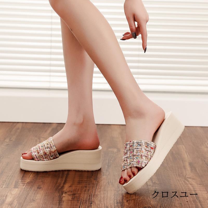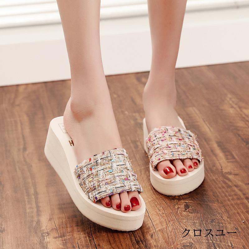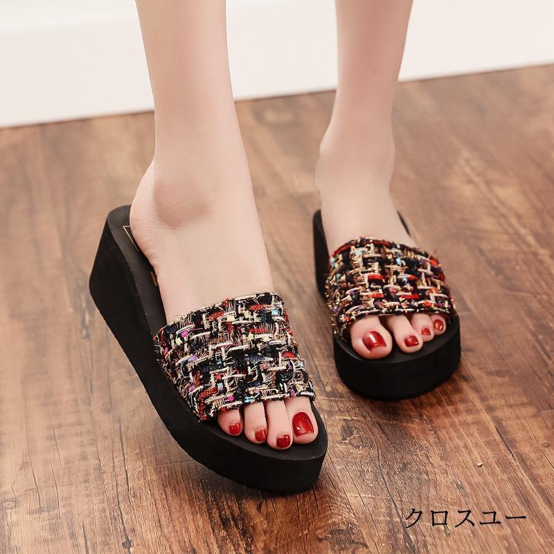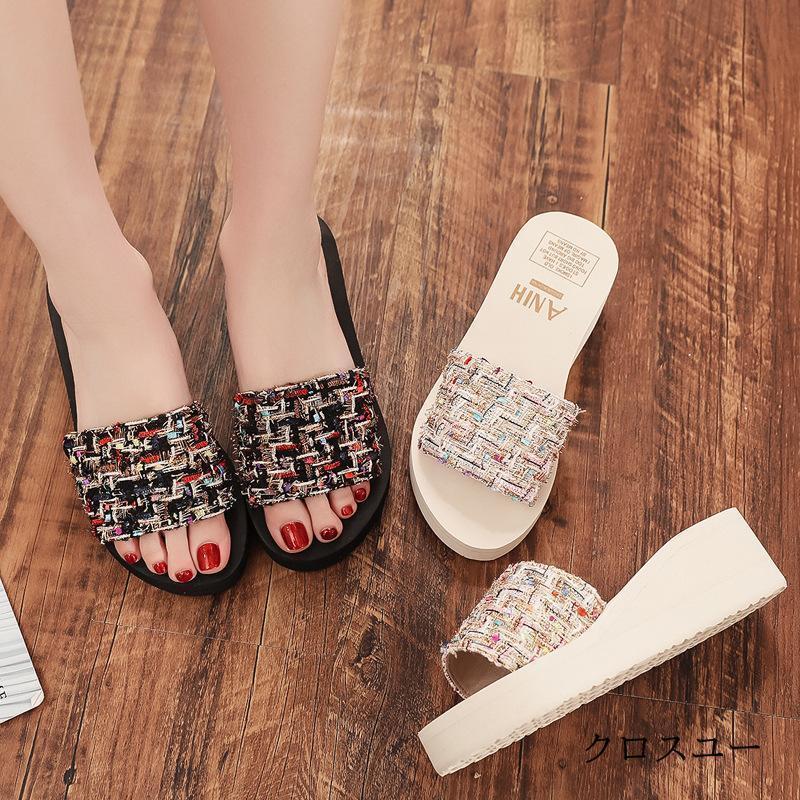 【大特価】サンダル 厚底 レディース 女性用 プラットフォーム 5cmヒール 太ベルト ツイード風 靴 くつ クツ つっかけ おしゃれ かわいい カジュアル デ