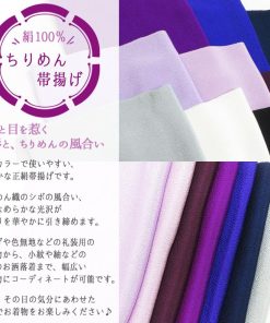 【4枚までメール便送料無料】高級 ちりめん 正絹帯揚げ 絹100% 伝統的工芸品 幅27.5mm 並尺 約168cm 手組紐 9色 カラフル 紫 白 黒 和装小物 着付け小物 レディース 女性 / 通年用 お洒落 カジュアル 着物 訪問着 付け下げ 袷 色無地 小紋 紬 振袖 成人式 卒業式