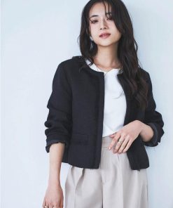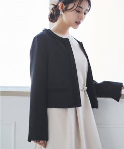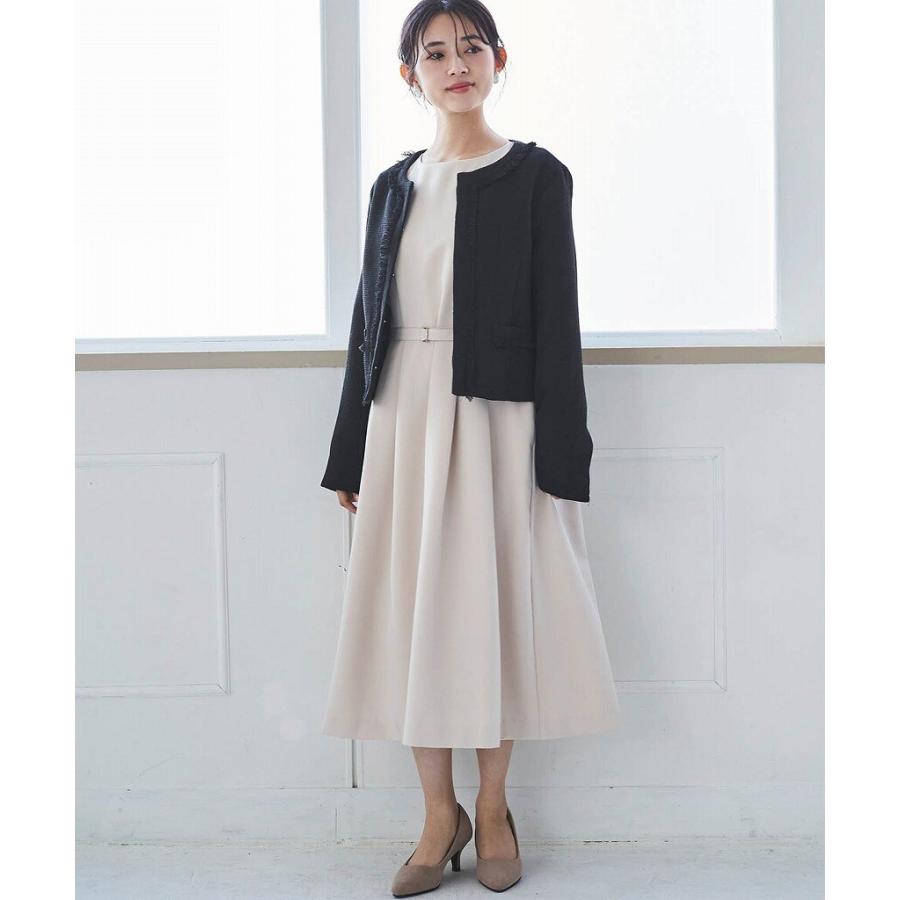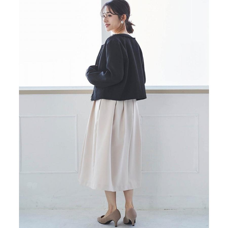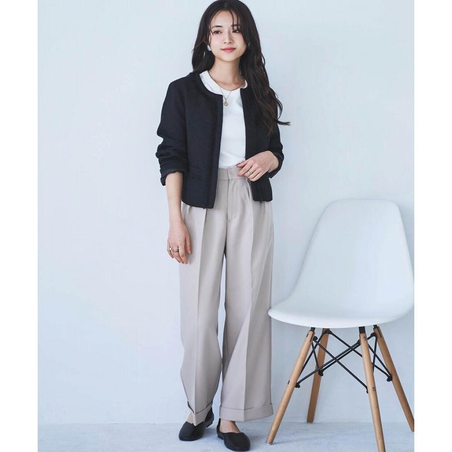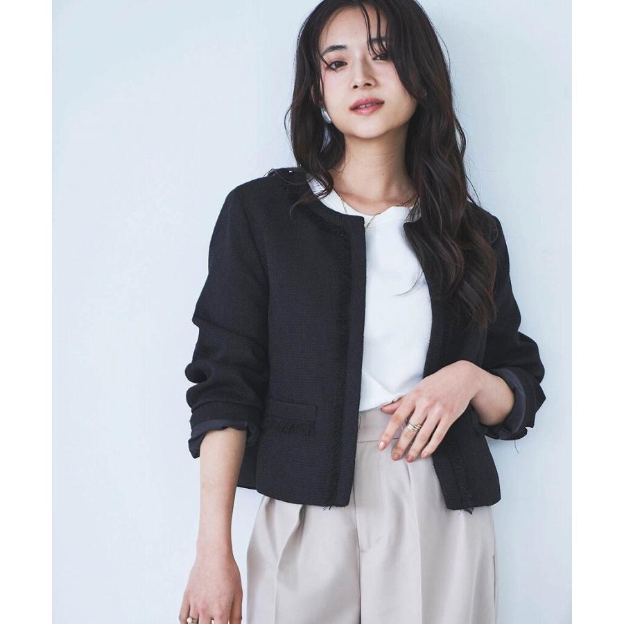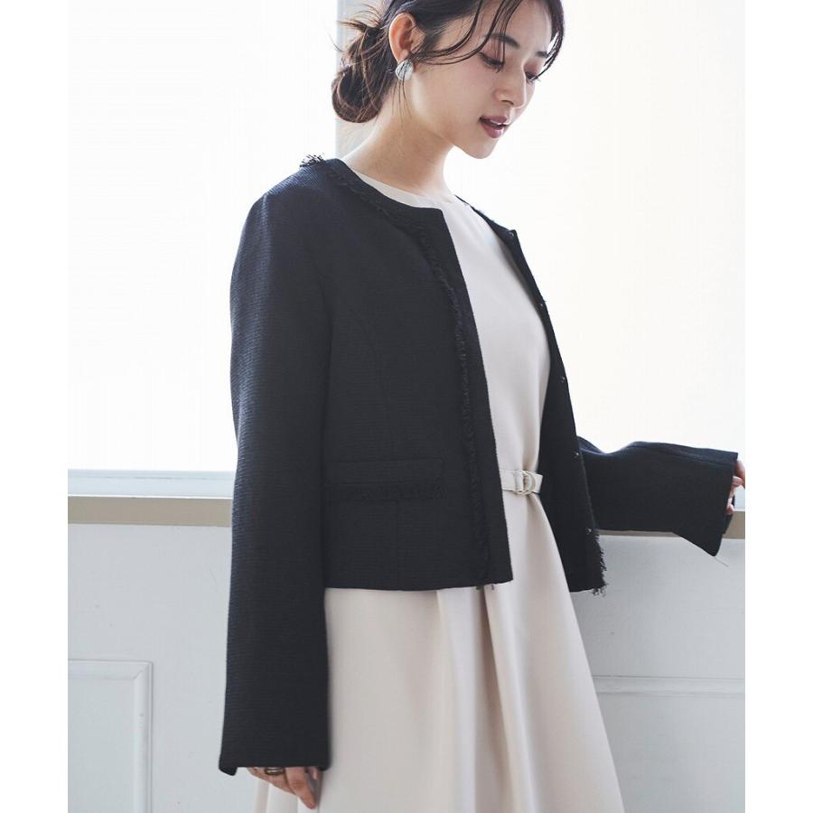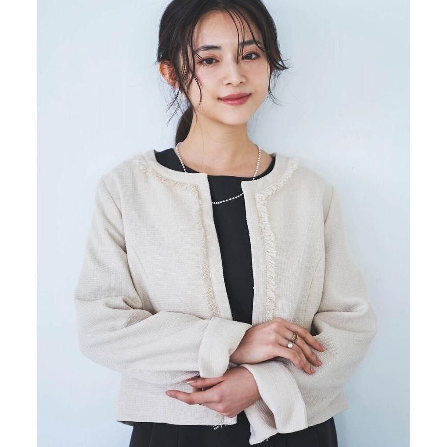 【mil (ミル)】ショート丈 フリンジツイードジャケット【低身長・小柄】