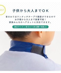 首回りはワンタッチテープで調節ができるのでお子様から大人まで装着可能。家族みんなのヘアカットに対応できます。