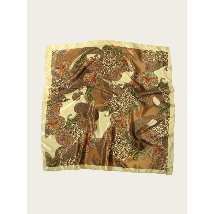 アクセサリー レディース スカーフ 1枚 女性用 ブラウン ペイズリー柄 サテン 90x90cm スクエアスカーフ、夏のトラベル、