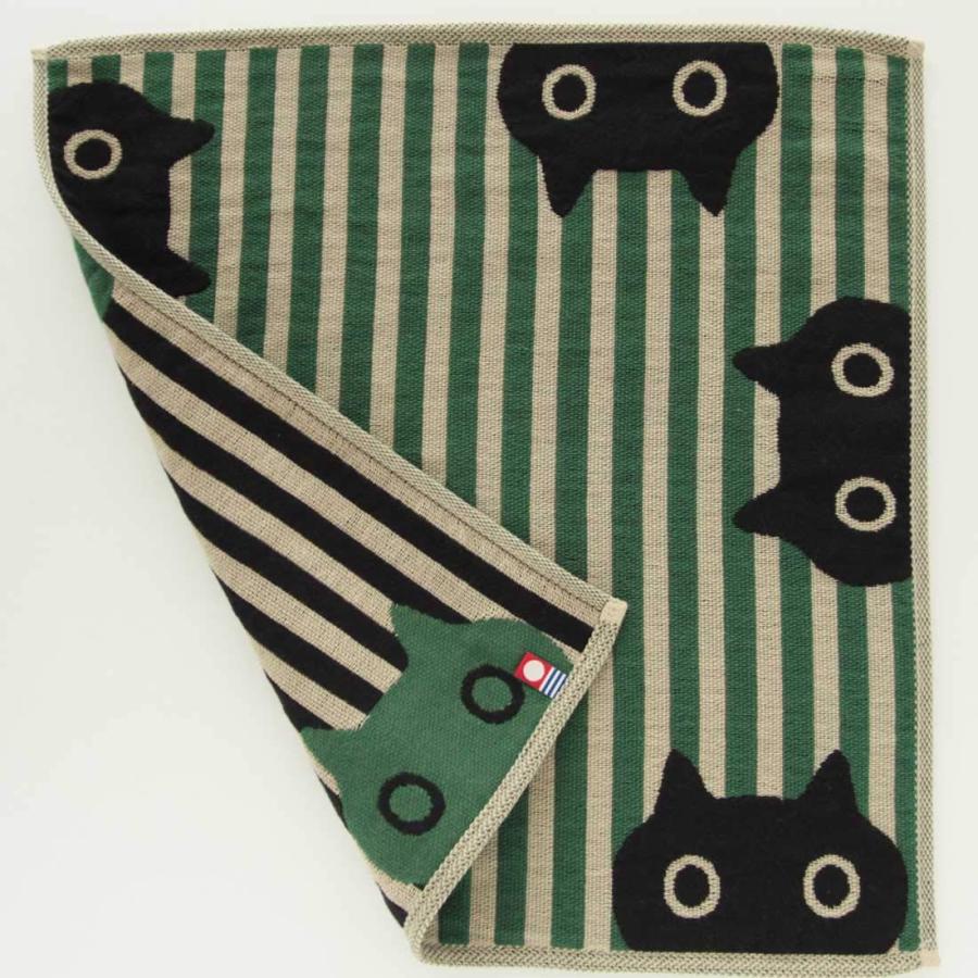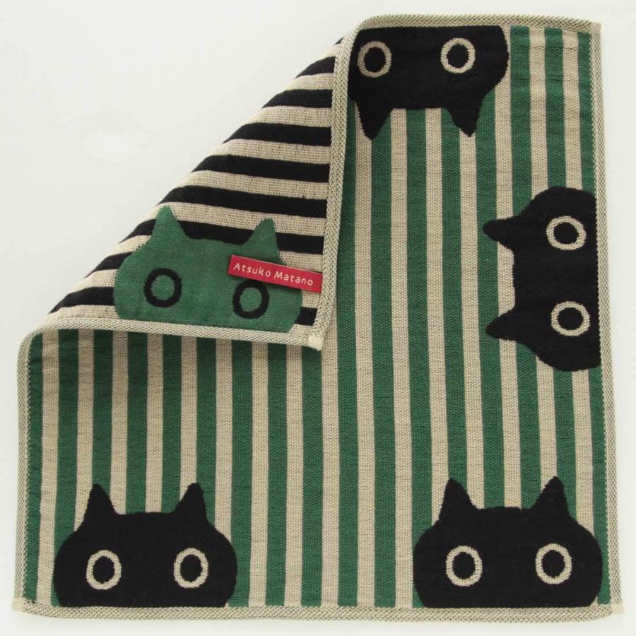 [アツコマタノ] Atsuko Matano 三重ガーゼハンカチ レディース (グリーン/綿100%) ガーゼハンカチ 猫柄 ネコ MEME 今治 プ