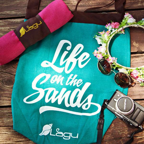 Laguビーチブランケットと同じ素材で作られたビーチバッグです。