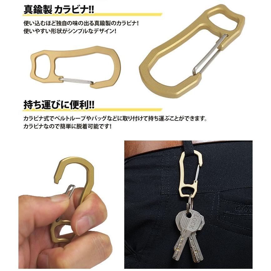 カラビナ キーホルダー 真鍮製 小型 軽量 鍵 カギ キャンプ アクセサリー アウトドア 持ち運び 便利