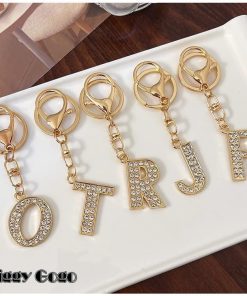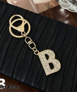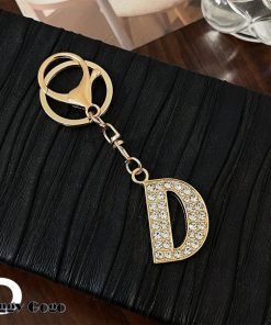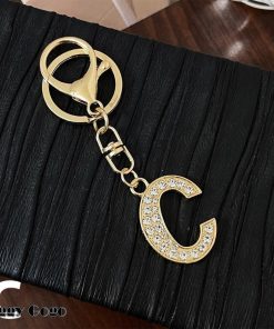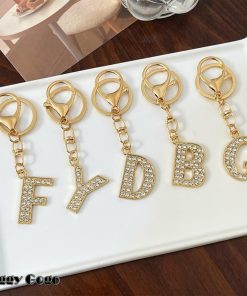 ラインストーンが輝くおしゃれなイニシャルキーホルダー。