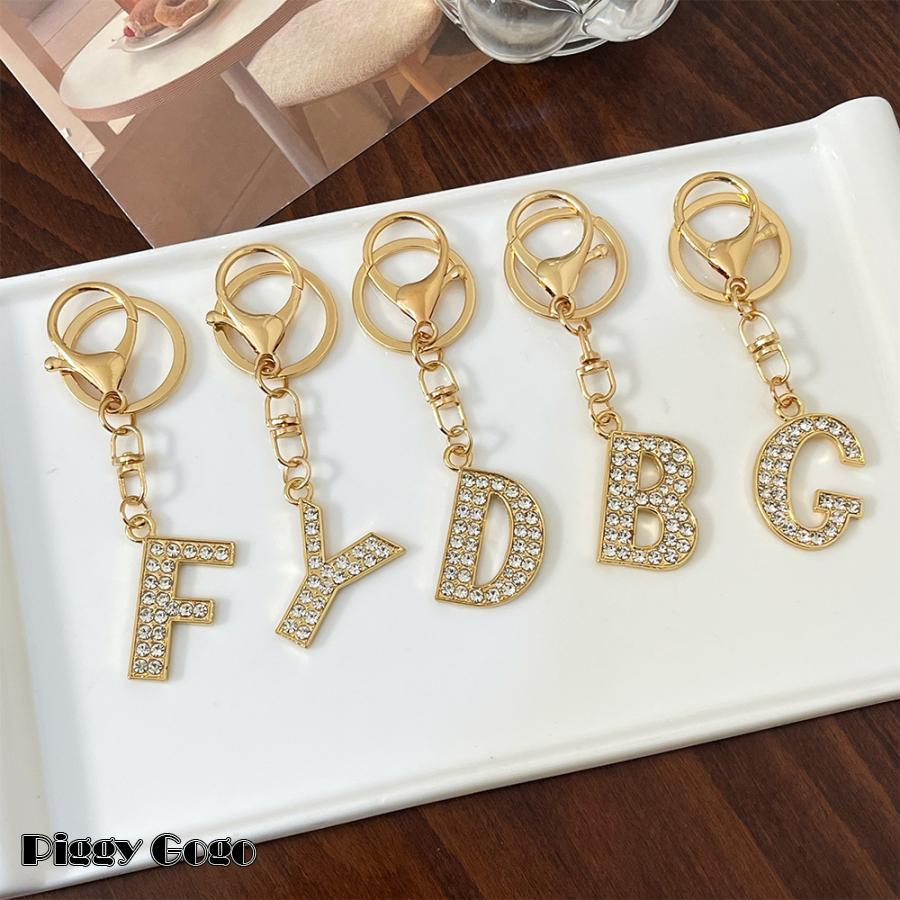 キーホルダー キーリング バッグチャーム レディース 女性 イニシャル アルファベット ラインストーン キラキラ 可愛い おしゃれ ギフト プレゼント