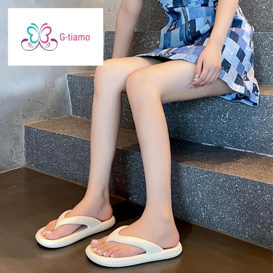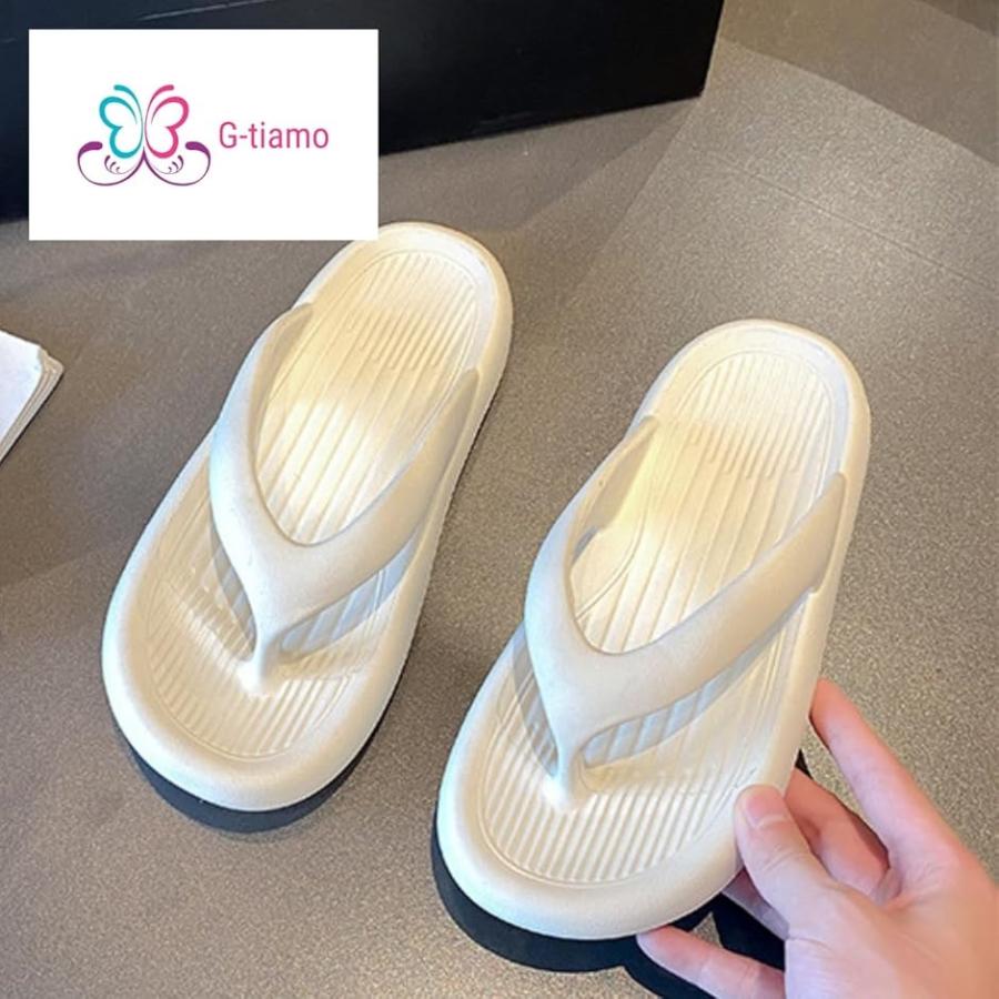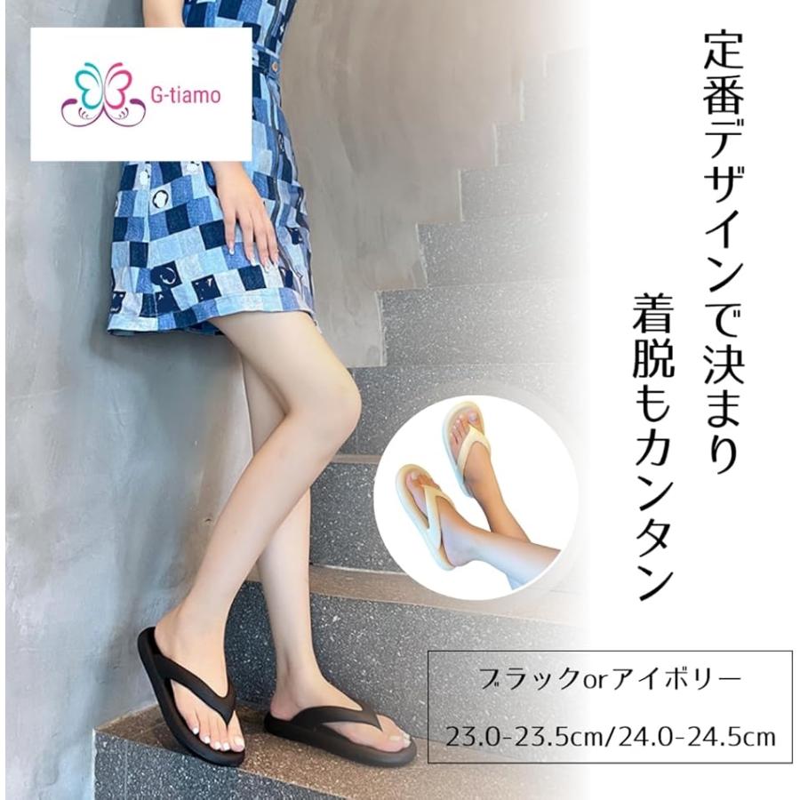 ジーティアモ 厚底 トング サンダル レディース 柔らかい 歩きやすい トングサンダル 韓国(アイボリー, 24.0〜24.5 cm)