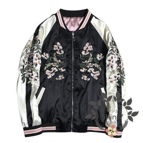 スカジャン リバーシブル 男女兼用 花柄 刺繍2WAY仕様 野球服 スタジャン アウター フライトジャケット