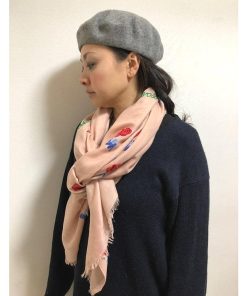 花モチーフとスペルのカラー刺繍がフェミニンでかわいい☆大判ストールです