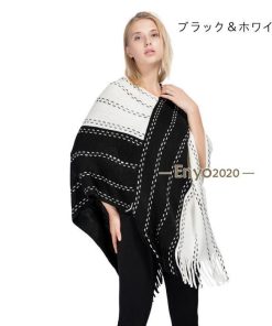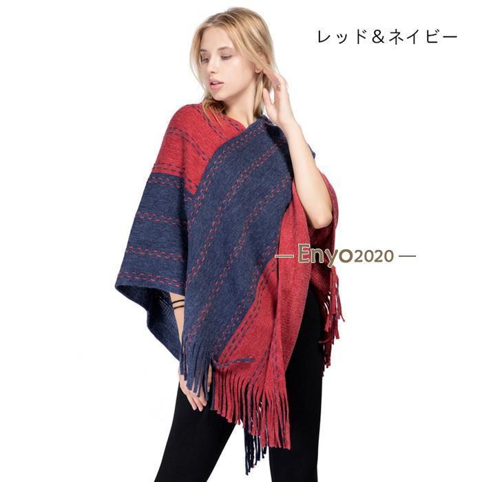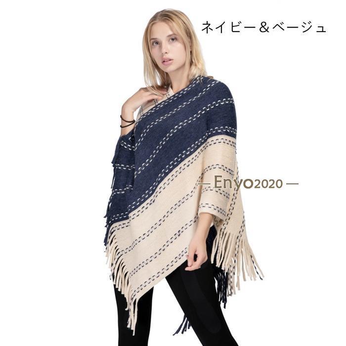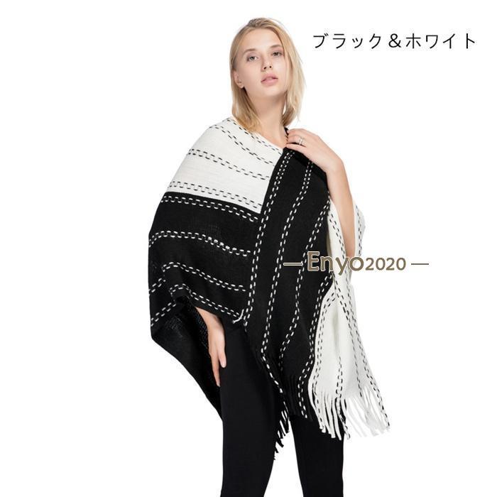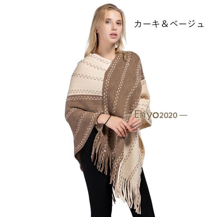 ストール ポンチョ ポレロ 大判 ショール 秋冬 ニット レディース フリンジ ケープコート 防寒着 大判ストール