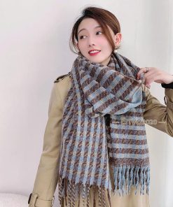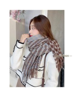 ストール レディース 大判 マフラー ケープ ショール フリンジ 編み カシミアタッチ チェック 防寒 暖か 秋冬 通勤 学生 おしゃれ 韓国風 新作