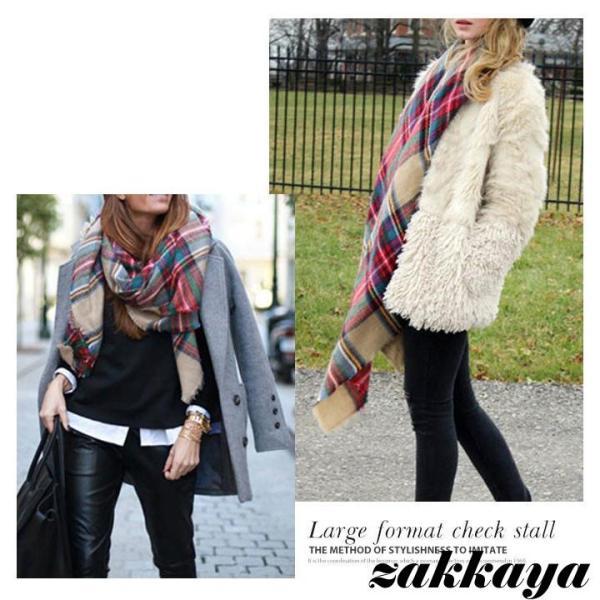 ストール 大判 レディース マフラー チェック チェック柄 ショール スカーフ 秋冬 秋 冬 ひざ掛け 膝掛け