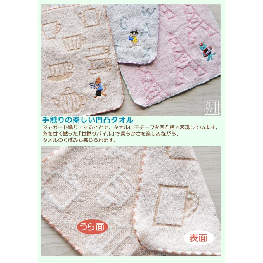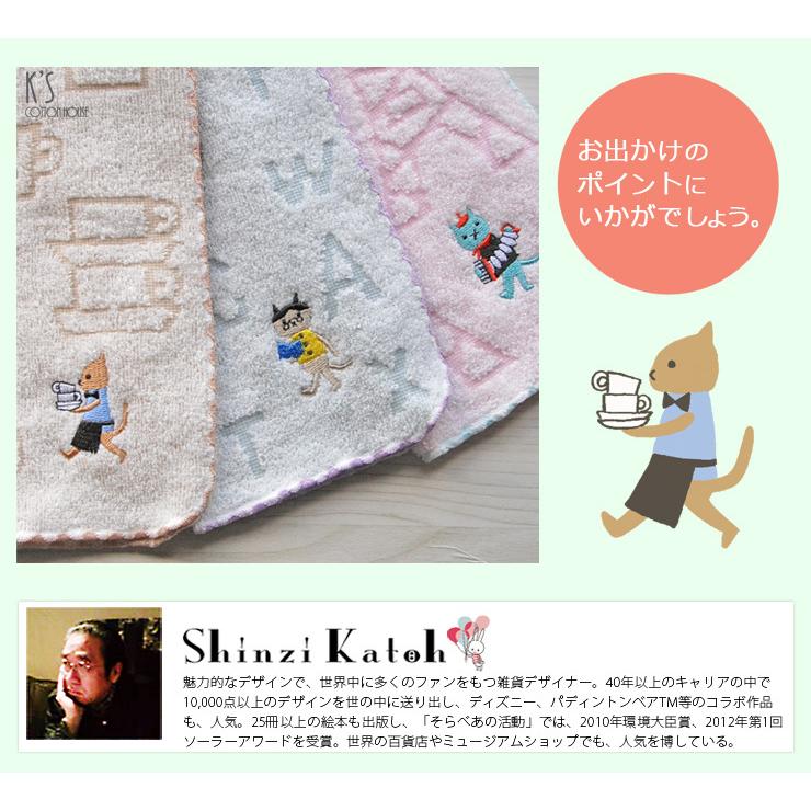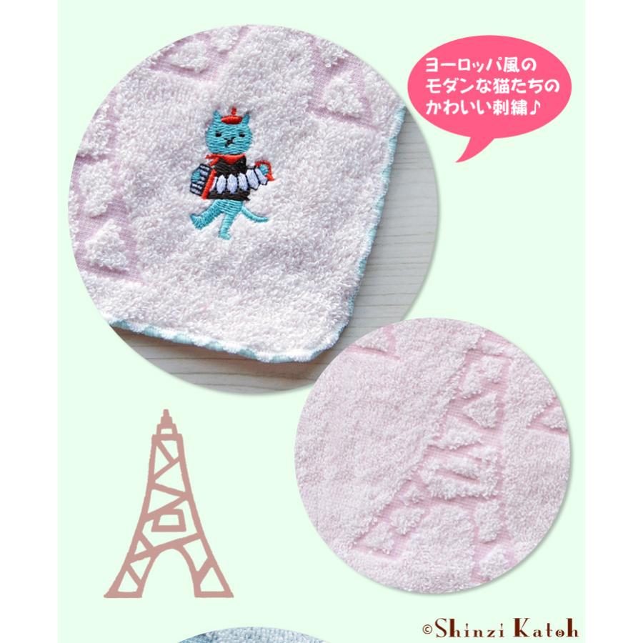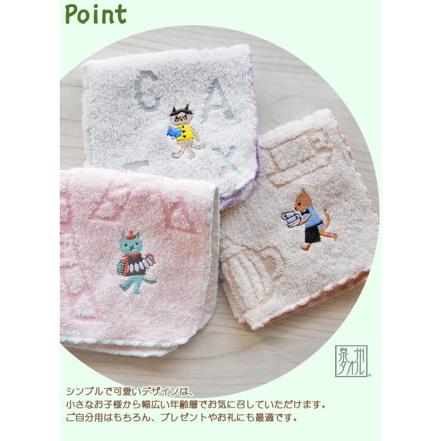 タオル ハンカチ レディース 猫柄 猫 ネコ ワンポイント 刺繍 子供 日本製 泉州タオル Shinzi katoh キャットン 約23×23cm 綿100% アウトレット 優