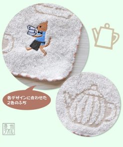 ジャガード柄に ネコ の 刺繍 がワンポイント