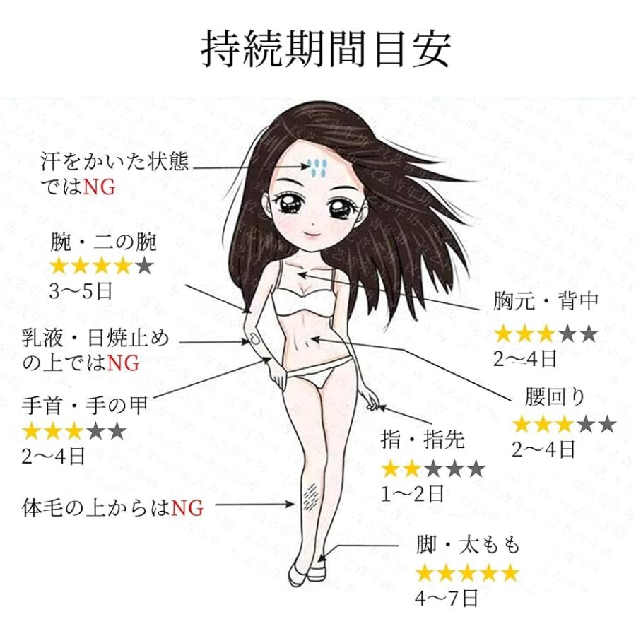 指・首筋・胸元などお好みの映える箇所に貼って楽しめます。