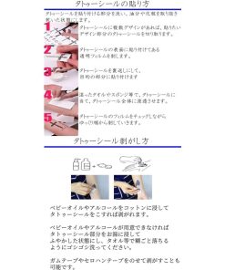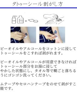 ・貼り付けたいタトゥーシールを切り取り、表面の透明保護シートを剥がし貼り付けたい箇所の汗や油分と取り除き、絵柄を肌面に触れるように台紙ごとタトゥーシールをのせて軽く押し付けます。