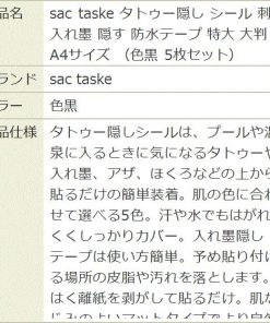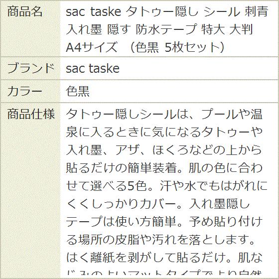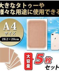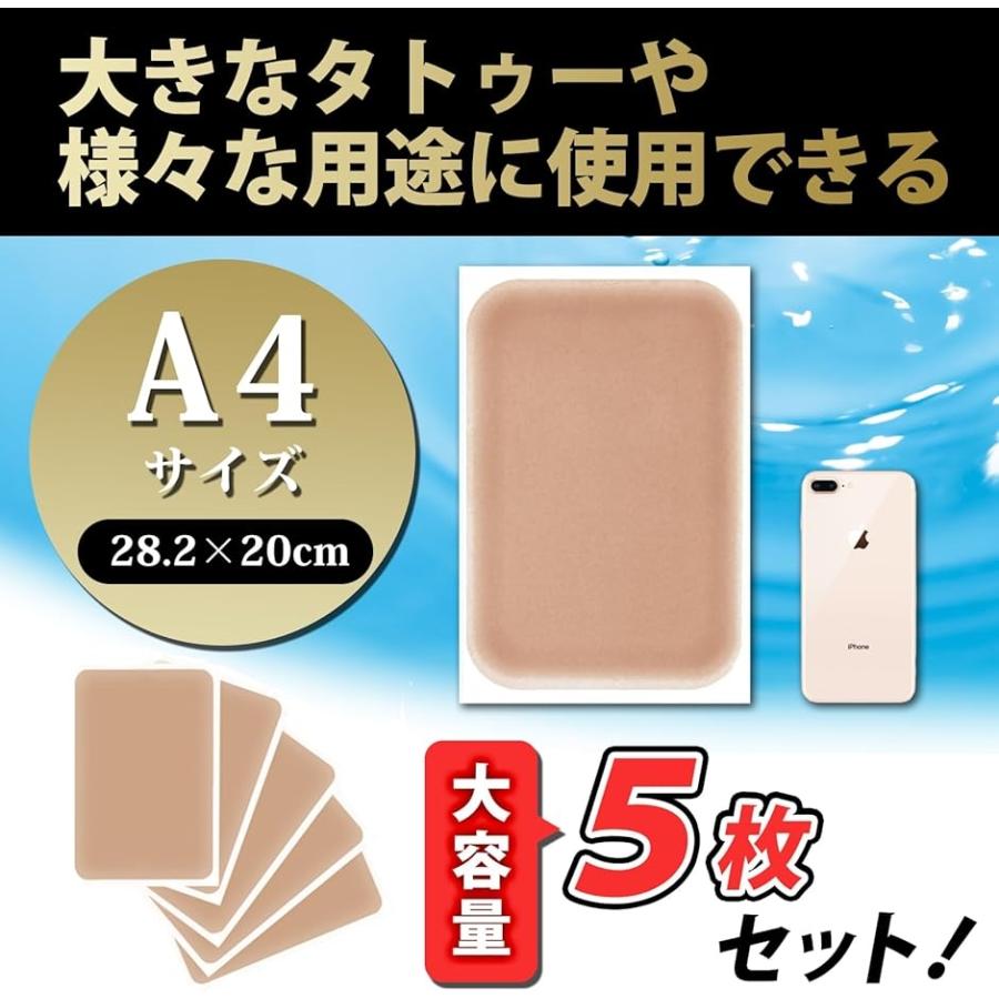 タトゥー隠し シール 刺青 入れ墨 隠す 防水テープ 特大 大判 A4サイズ 色黒 5枚セット(色黒)