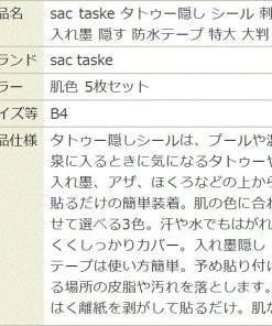 タトゥー隠し シール 刺青 入れ墨 隠す 防水テープ 特大 大判(肌色 5枚セット, B4)