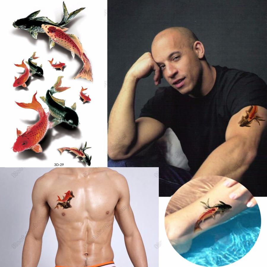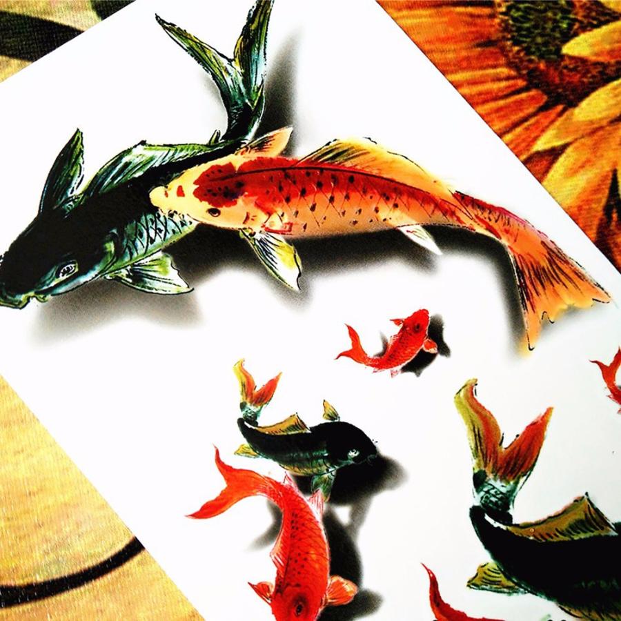 タトゥー シール 3D 魚 鯉 コイ こい ボディシール TATOO 入れ墨 刺青 転写 防水 オマケ付