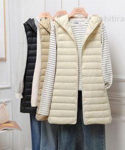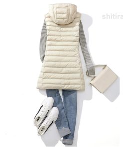 ダウンベスト レディース ベスト 袖なし フード付き 無地 ロングベスト ロング丈 チョッキ ジレ キルティング カジュアル 軽量 おしゃれ