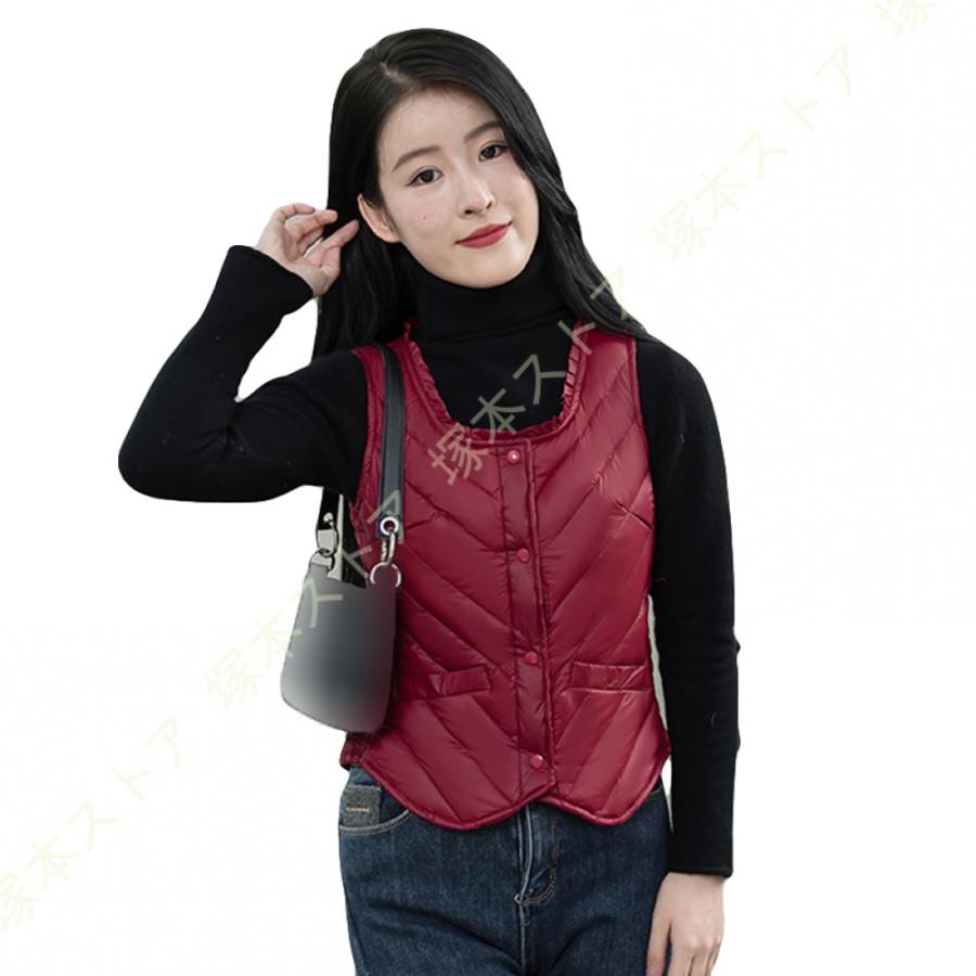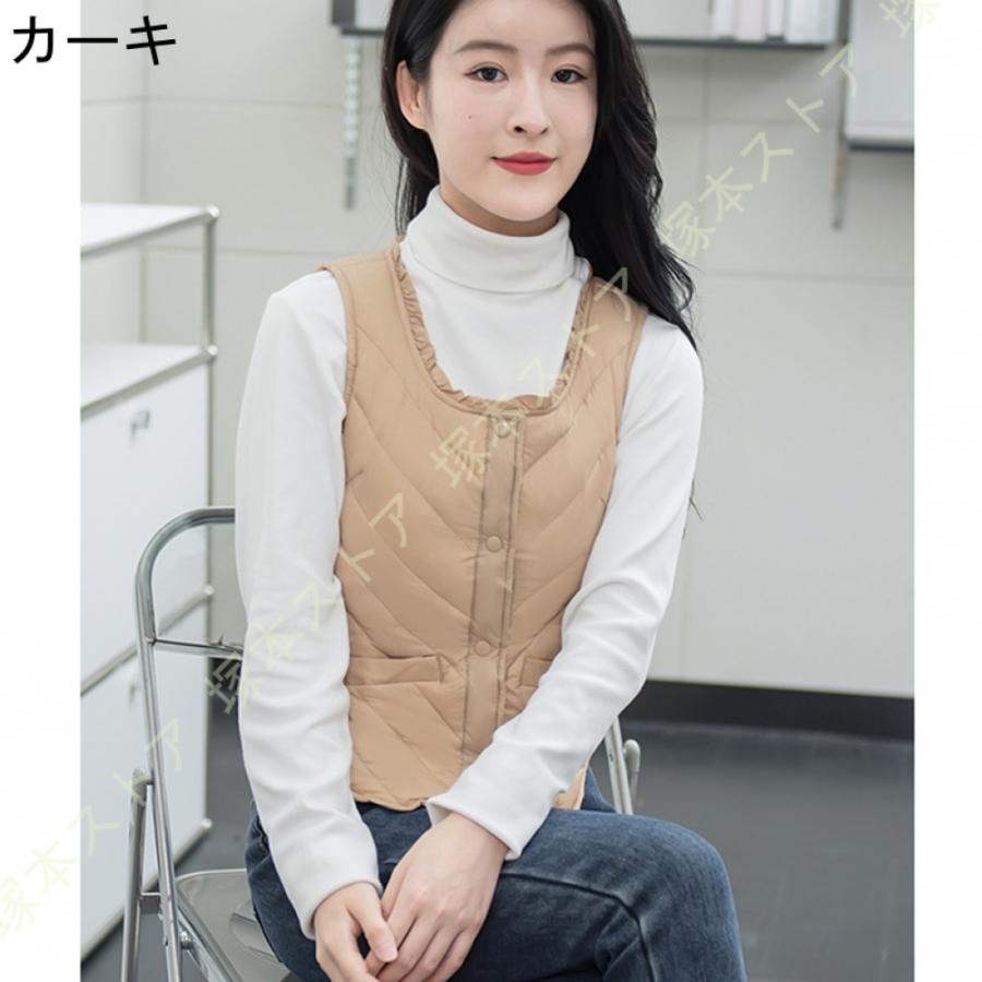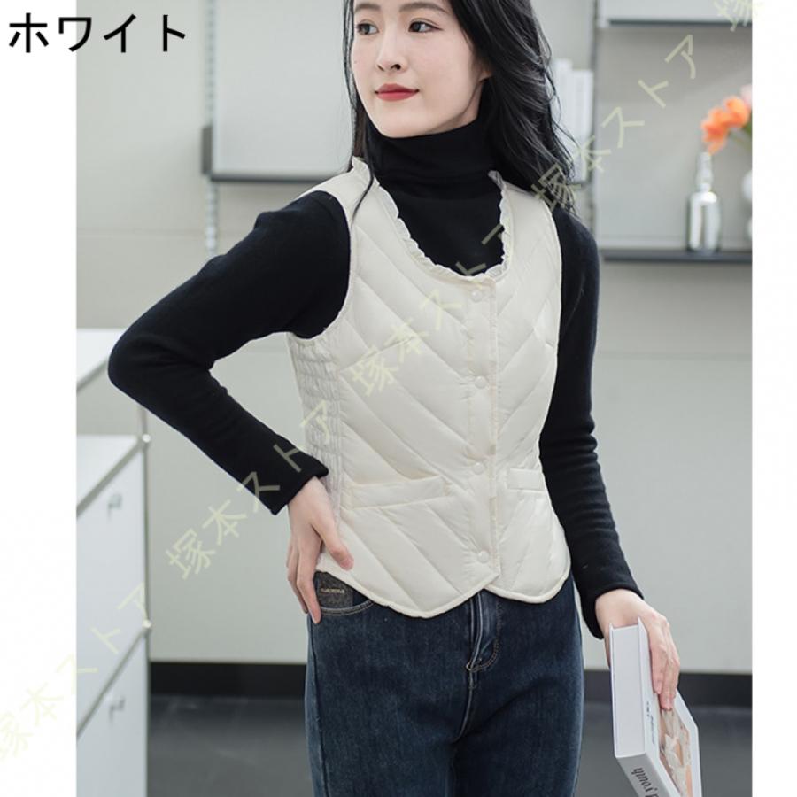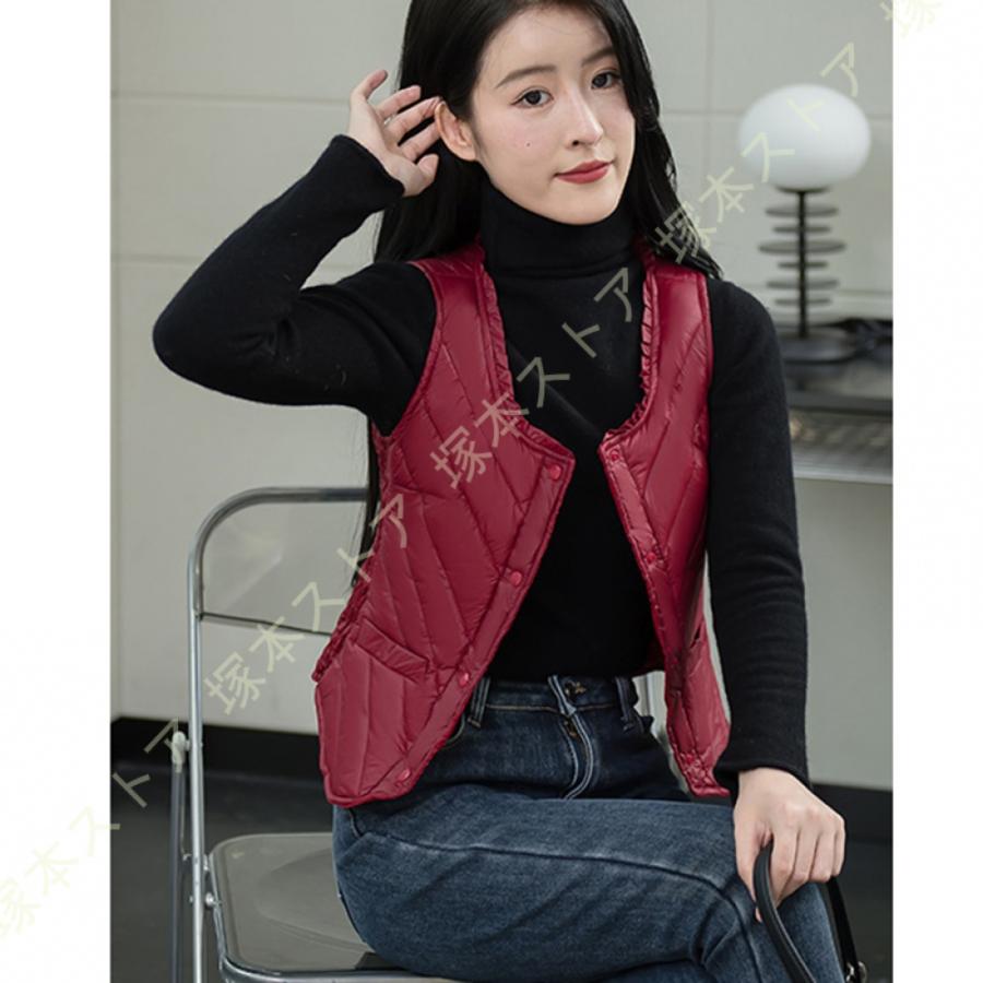ダウンベスト 秋冬春 インナーダウン レディースファッション トップス アウター ベスト ダウン ダウンジャケット ラウンドネック ショート 軽量 暖かい