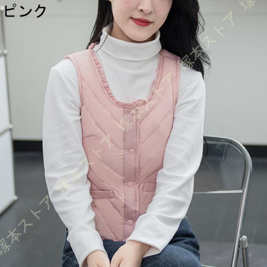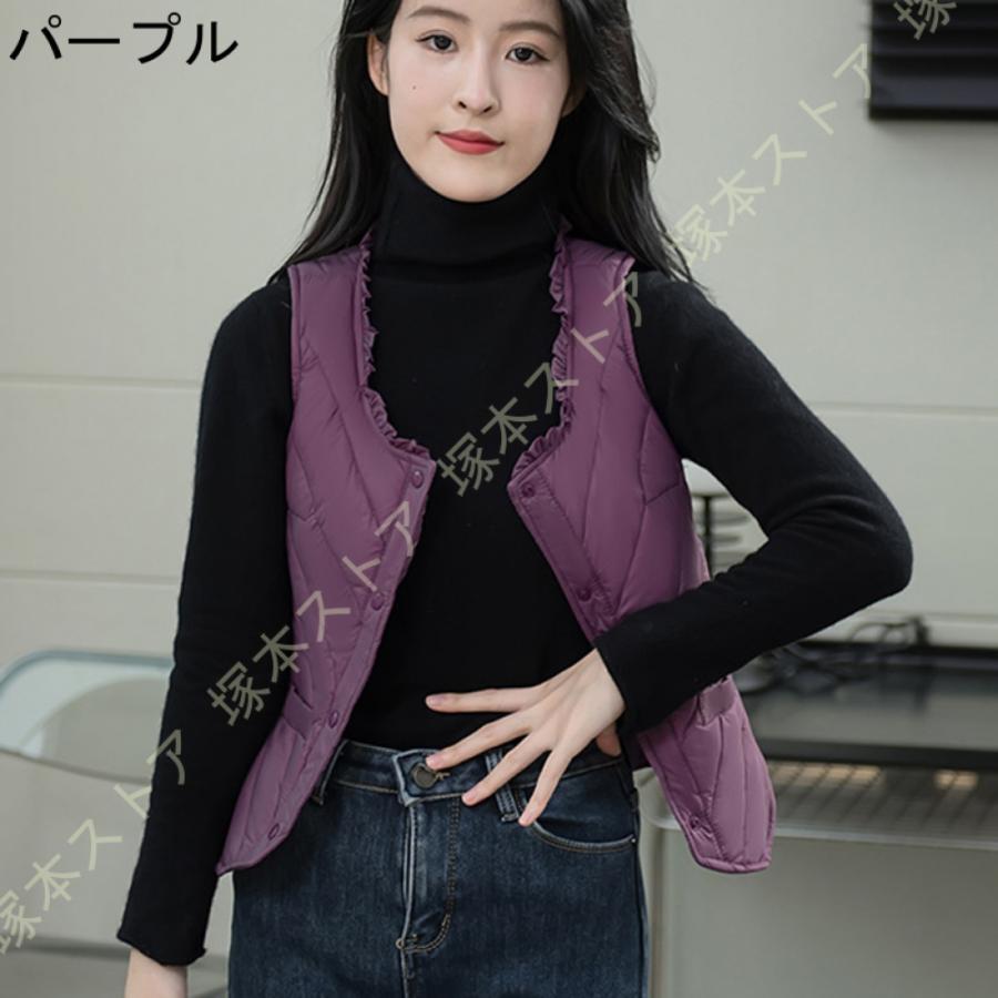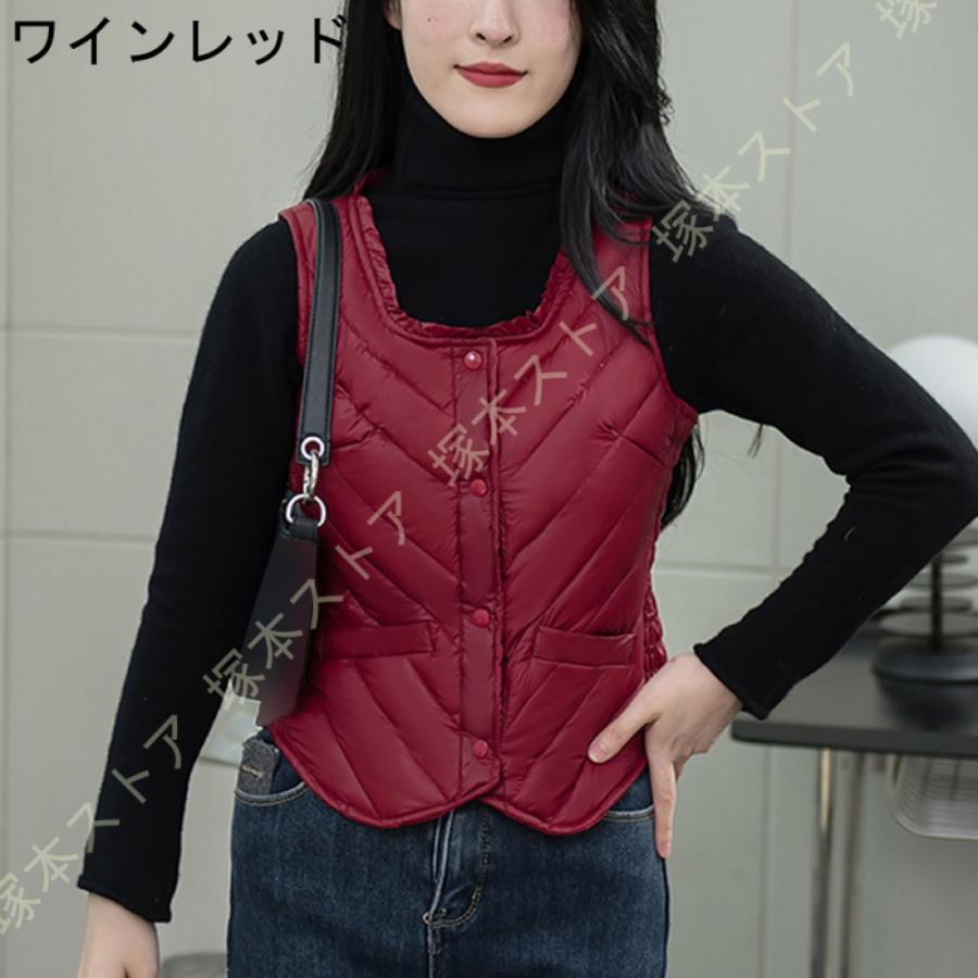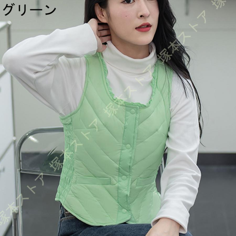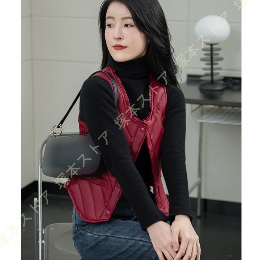 ダウンベスト 秋冬春 インナーダウン レディースファッション トップス アウター ベスト ダウン ダウンジャケット ラウンドネック ショート 軽量 暖かい