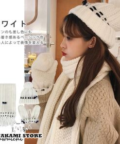 ニット帽子 マフラー 手袋 3点セット レディース 帽子 防寒 保温 シンプル 無地 リボン 可愛い 秋冬 おしゃれ カジュアル プレセント 全3色 フリーサイズ