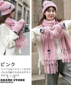 防寒・保温効果抜群のニット帽&ネックウォーマー&手袋の3点セット。
