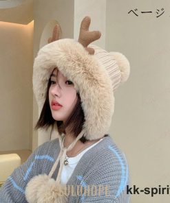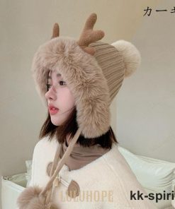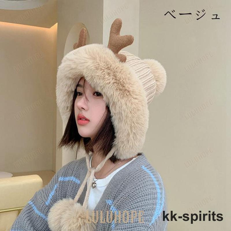 ファー帽子 ニット帽子 ボアぼうし レデイーズ 鹿の角 冬ぼうし キャップ もこもこ おしゃれ かわいい 秋冬 シンプル 暖かい 小顔効果 防寒 カジュアル プレゼント