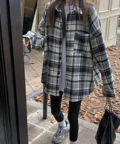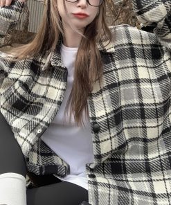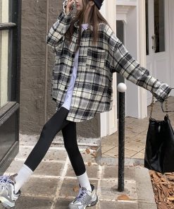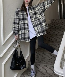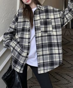 ブルゾン アウター チェック柄ビッグサイズシャツジャケット レディース