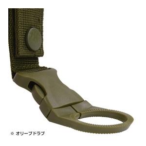 ●ベルトに取り付けて、バッグいらずのボトルホルダー●ペットボトルのネックリング部分にホルダーの輪っかを取り付けて、ベルトループにベルトを装着し持ち運ぶことができるペットボトルホルダーです。リリースバックルでベルトからボトルの取り外しが可能。ベルトループはスナップボタンとベルクロの二重構造。登山やアウトドアなどで使える優れたアイテムです。●ボトルホルダーの詳細 サイズ全長:約15.5cm、ベルトループ幅:約6cm、リング内径:約2.4cm、重量:約19g、素材:プラスチック、ナイロン、カラー:オリーブドラブ、ブラック、タン[仕様・意匠は予告なく変更される場合があります][ rev27304 ]