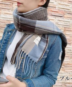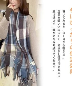 マフラー レディース カシミヤタッチ チェック 青 大判 ストール 暖かい 防寒 通勤 通学 おしゃれ 30代 40代 50代