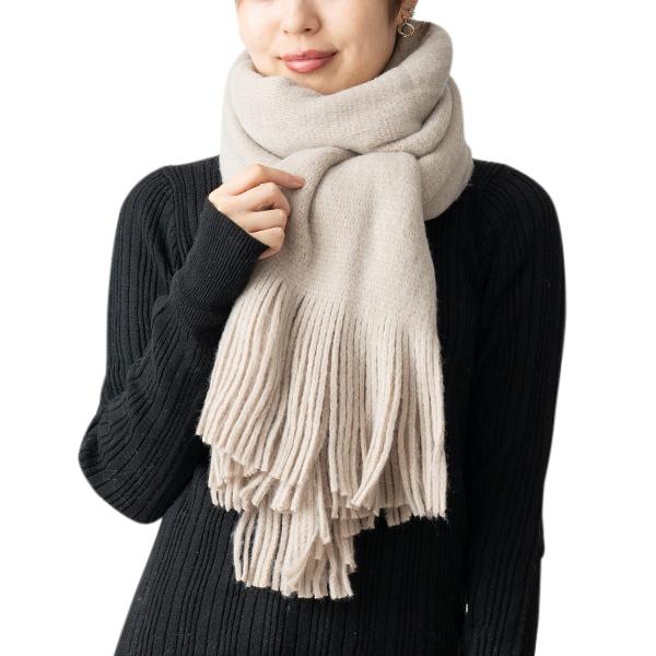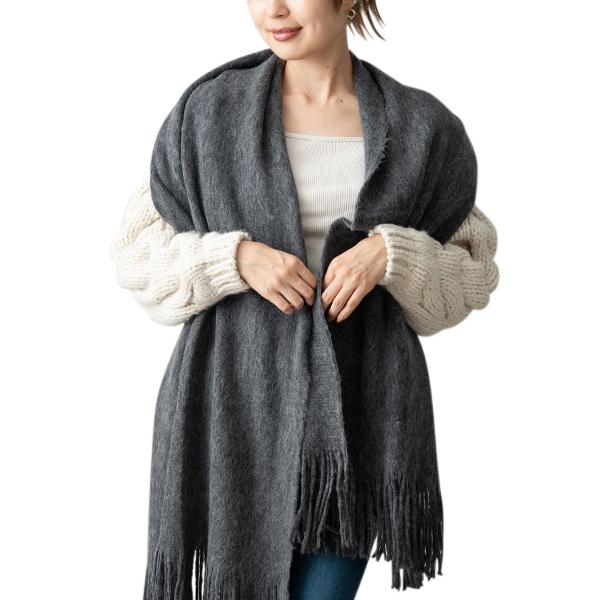大判サイズなので、カーデ代わりに羽織ったり、ぐるっと巻いてボリュームを出したりと、アレンジはイロイロ。
