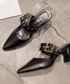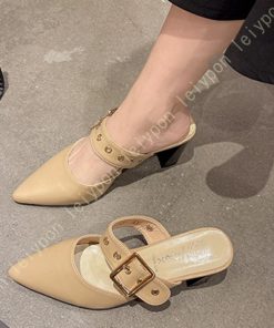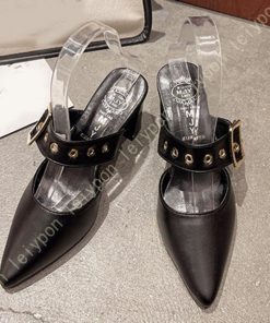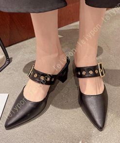 ミュール パンプス チャンキーヒール ポインテッドトゥ 前ふさがり レディース ストラップ サンダル 歩きやすい 履きやすい 疲れない オフィスサンダル