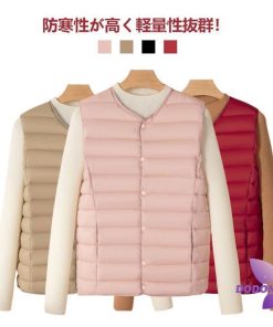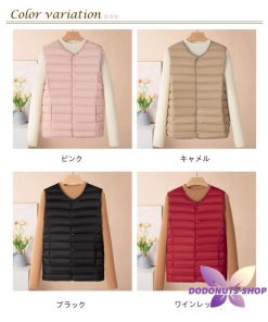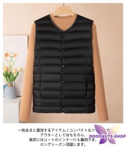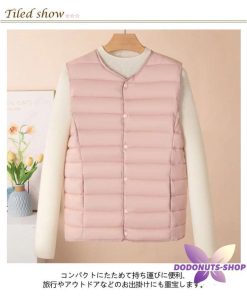 レディース ライトダウンベスト キルティングベスト ライトダウン 暖か ノーカラー インナーダウン アウター あたたかい 軽い 秋 防寒 薄い 無地