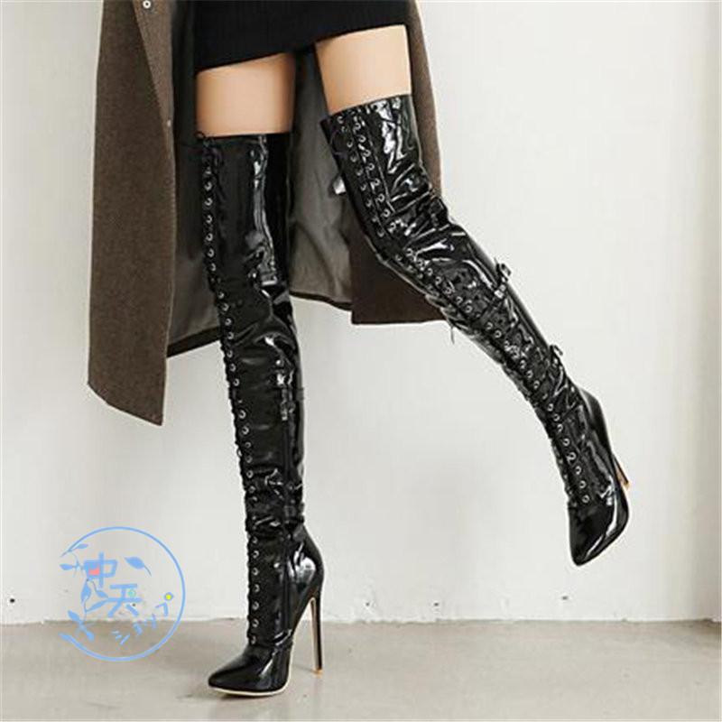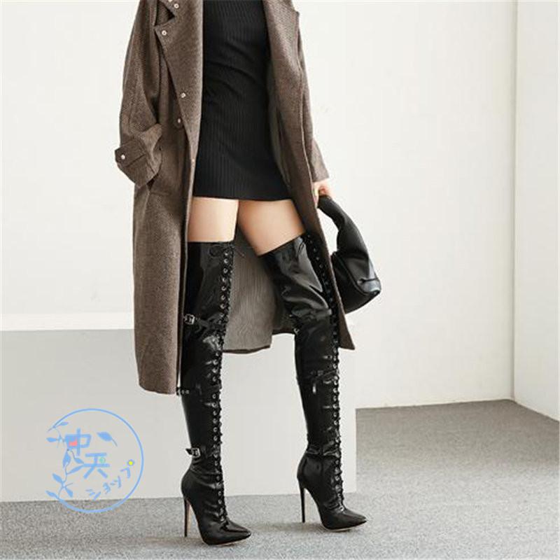 ロングブーツブーティー大きいサイズ黒 ニーハイブーツ超ハイヒールレディースセクシーブーティー 長靴ショートブーツ 防寒おしゃれ秋冬靴オフィス ごスプレ用