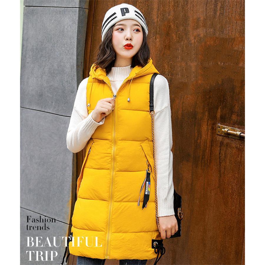 中綿ベスト ロングベスト レディース 厚手 フード付き アウター 羽織り ゆったり 軽量 シンプル カジュアル 保温 暖かい 防寒 冬