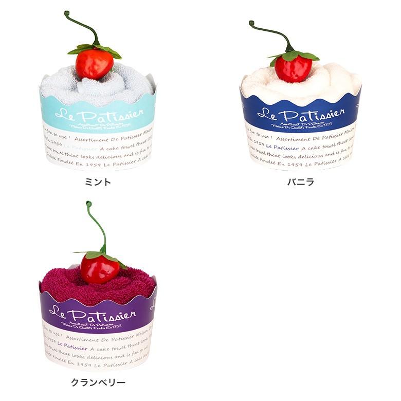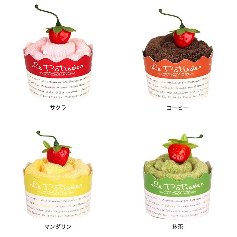 ケーキ生地はふわふわ柔らかな手触りのタオルハンカチ。