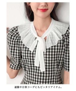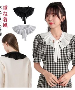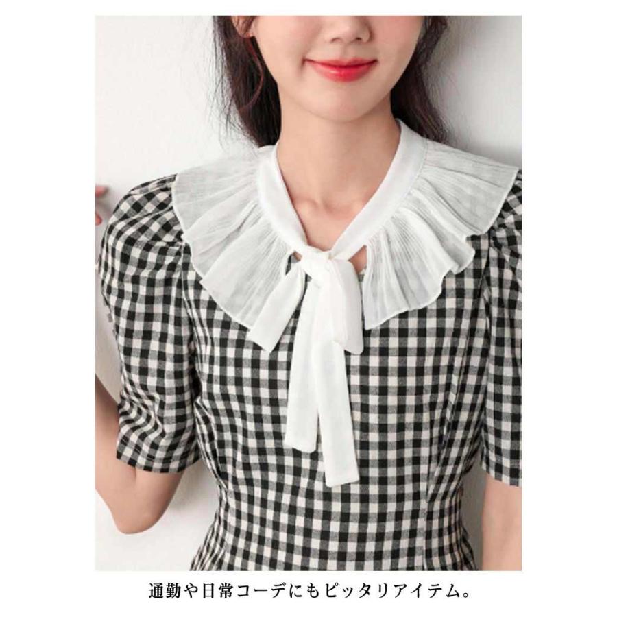 付け襟 リボン レトロレース レディース つけえり ブラウス付け襟 フリル 丸襟 重ね着風 フレア ブラウス襟 レイヤード つけ襟 立ち襟 シフォン