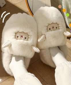 [ソフトで快適]: スタイリッシュな漫画の子羊の耳デザインのスリッパ.スリップオンデザインで履きやすく.机の脚や敷居が蹴るのからつま先を守ります.