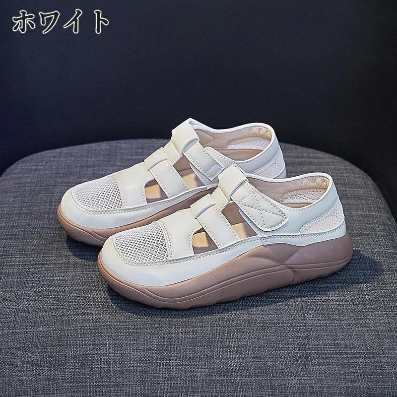 厚底スニーカー サンダル レディース 蒸れない 夏サンダル アウトドア ストラップサンダル メッシュスニーカー マジックテープ 美脚 大人 シューズ 歩きやすい