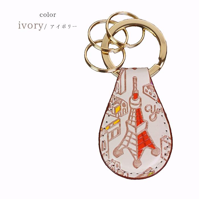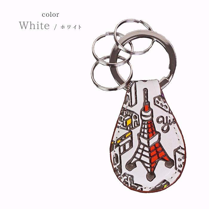 愛着のあるタッチで描かれた東京タワーが印象的。ギフトにもおすすめの本革キーホルダー。