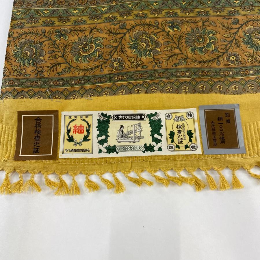 反物 秀品 小紋 紬地 証紙有 花唐草 草花 茶色 正絹 中古